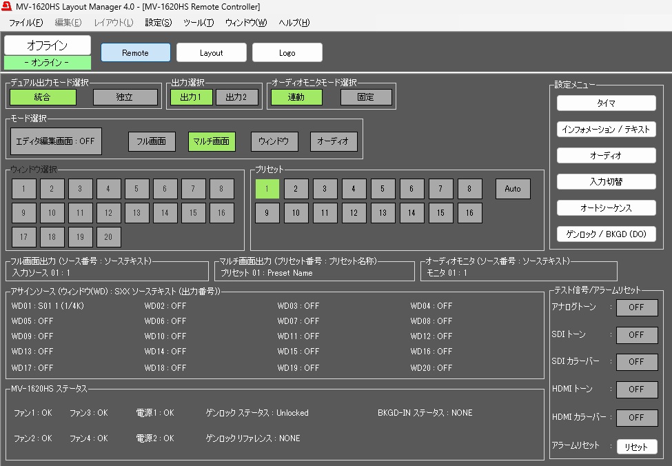 レイアウトマネージャーを使用しリモート操作など確認済みです。